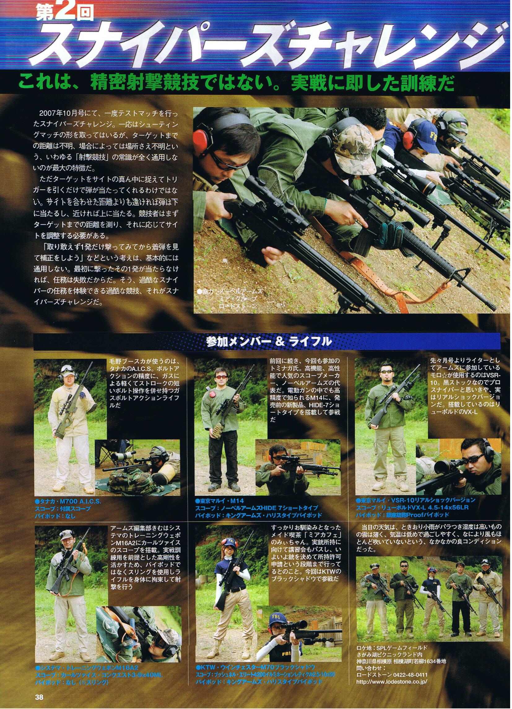 月刊ARMS MAGAZINE 2008年8月号 掲載ページ:38〜41P 掲載内容:(ミリタリー雑誌)スナイパーズチャレンジ 掲載スタッフ:(ミアカフェ)みぃ ページ詳細 http://maidhouse.main.jp/kouhou/arms-2008-08-1-1 http://maidhouse.main.jp/kouhou/arms-2008-08-1-2 http://maidhouse.main.jp/kouhou/arms-2008-08-1-3 http://maidhouse.main.jp/kouhou/arms-2008-08-1-4 |