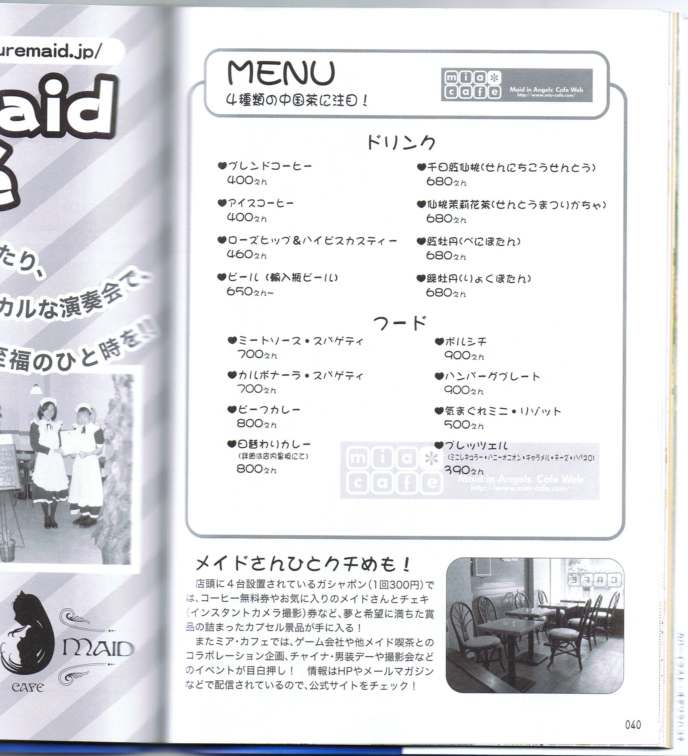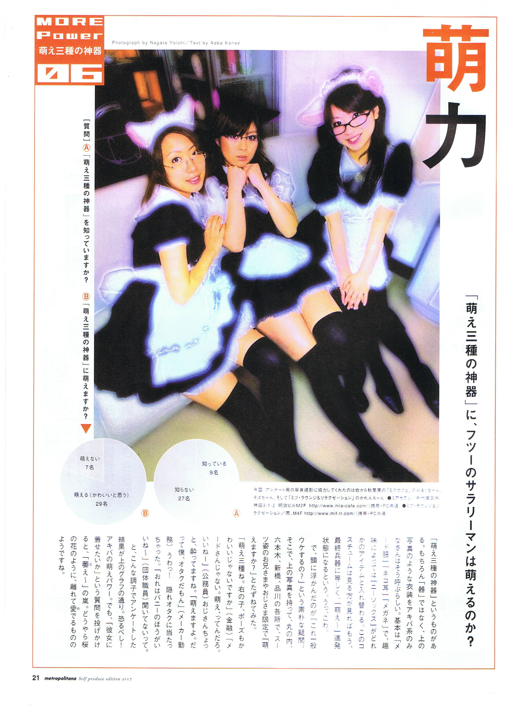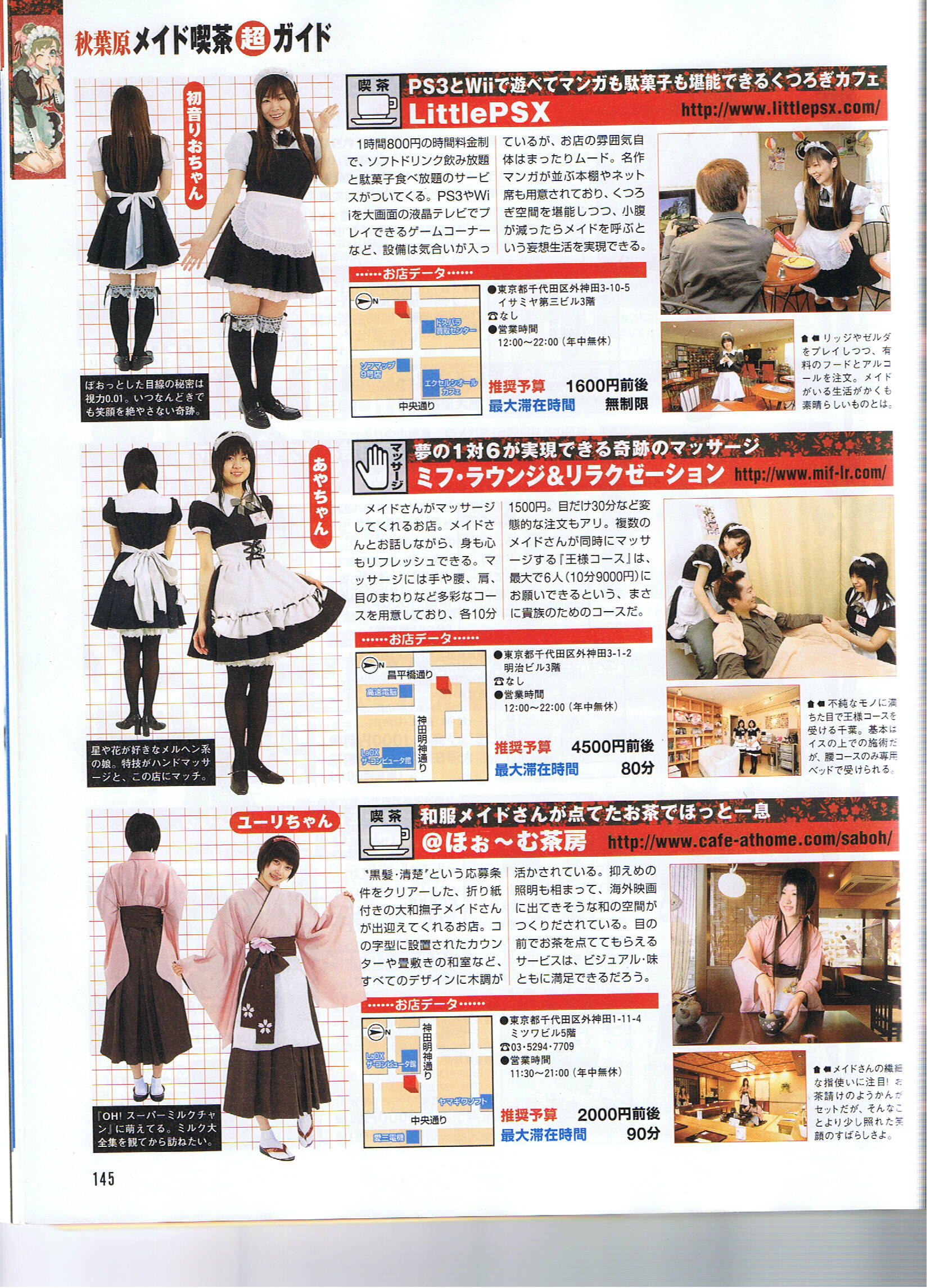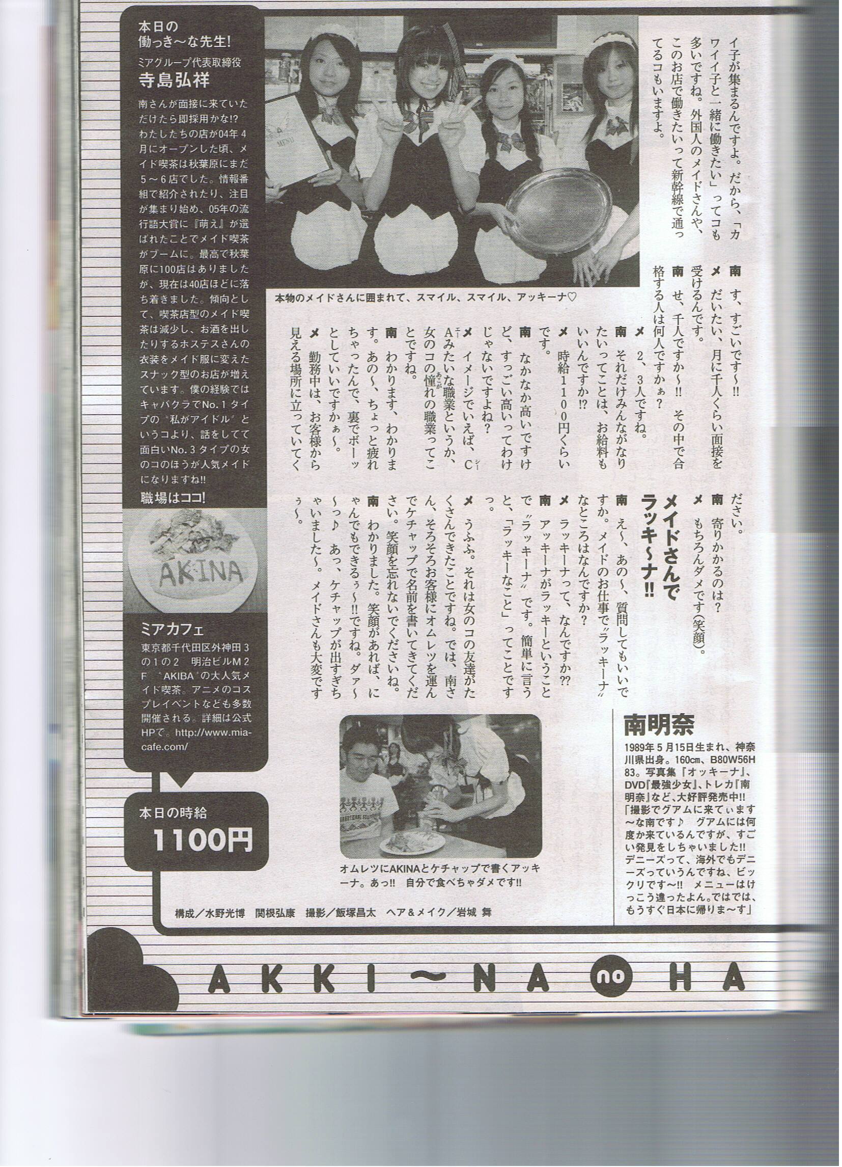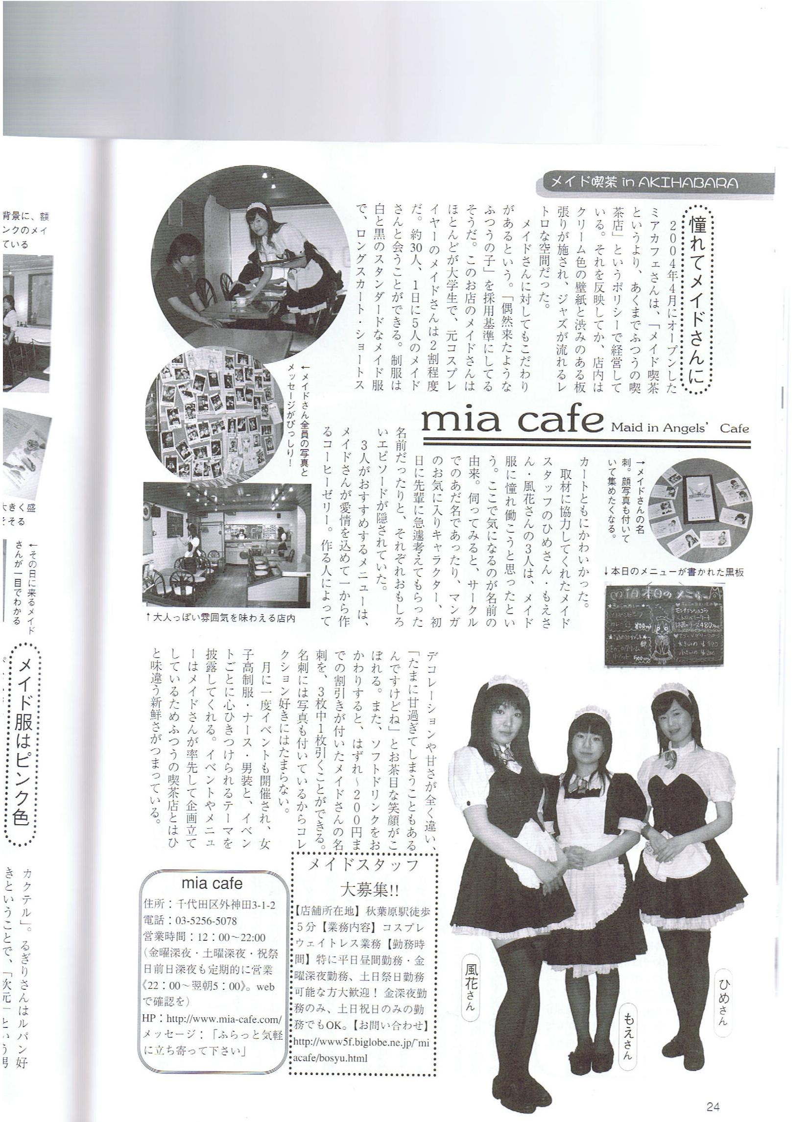 秋葉原完全攻略マップ&ガイド '07 掲載ページ:24P 掲載内容:メイド喫茶ガイド 掲載スタッフ:(ミアカフェ)もえ・りお ページ詳細 http://maidhouse.main.jp/kouhou/akihabarakangenkouryaku.jpg |