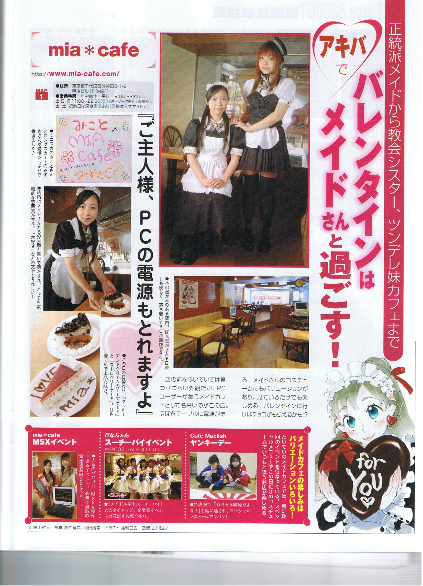 週刊アスキー 2008年2月5日号 掲載ページ:160P 掲載内容:アキバでバレンタイン特集 掲載スタッフ:(ミアカフェ)みずき・みこと ページ詳細 http://maidhouse.main.jp/kouhou/asuki2008-2-5 |