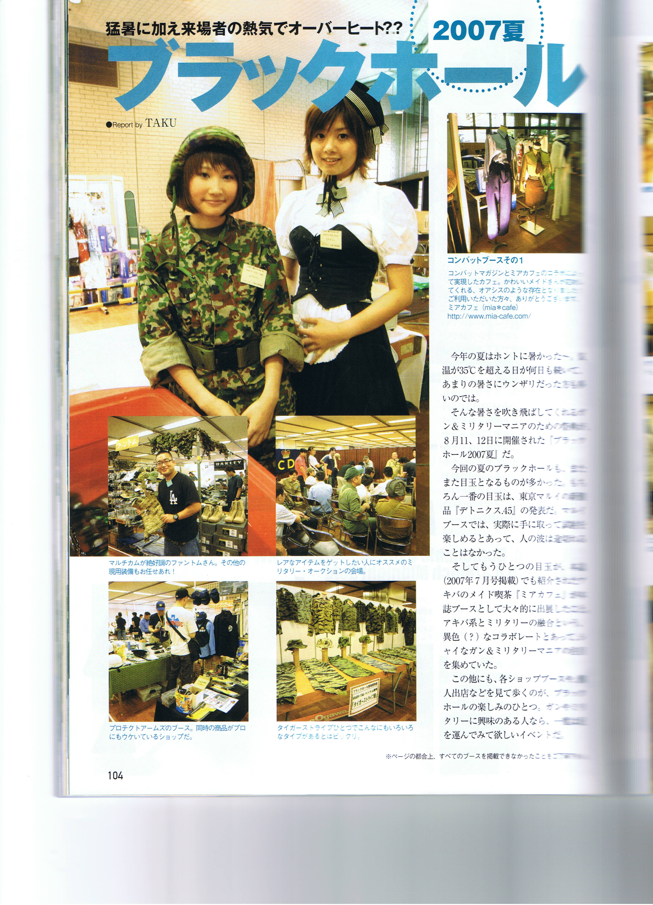 月刊COMBAT コンバットマガジン 2007 7月号 掲載ページ:85〜86P 掲載内容:自衛隊公認メイドカフェ紹介 掲載スタッフ:(ミア・ミフ兼任)あや・ちとせ ページ詳細 http://27.pro.tok2.com/~mia/kouhou/combat1.jpg http://27.pro.tok2.com/~mia/kouhou/combat2.jpg |