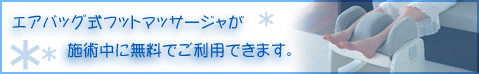 | エアバッグ式フットマッサージャが施術中に無料でご利用できます。 |