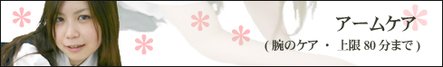 ![]() 腰ケア(腰のケア・上限20分まで) 料金:全メニュー共通・各10分 1500円 新コースとして、腰コースを始めました。 専用の施術ベッドも導入しています。 腕、手、肩、アイケアと組み合わせてご利用頂けます。 組み合わせてご利用の場合は、腕、手、肩、アイケアは通常シートにて施術、腰コースのみ専用ベッドにて施術を行うため、施術中にお部屋を1度移動頂きます。 お気軽に他のコースと組み合わせてご利用下さい。 |