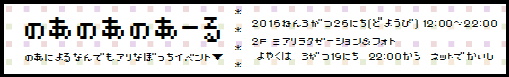 12:00〜22:00 | のあのあのあーる inミアリラ&フォト東京店  | |