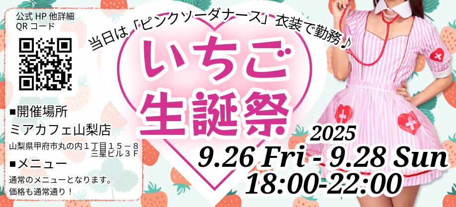 18:00〜22:00 | いちごちゃん生誕イベント!inミアカフェ山梨店  | |